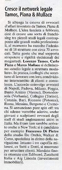 The legal Network grows Tamos, Piana & Mullace - From the newspaper "Il Mondo"