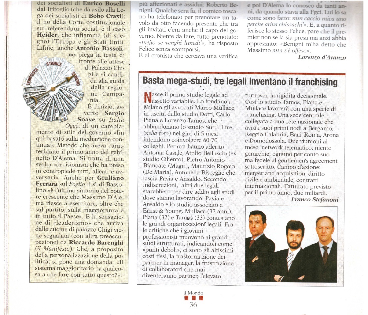 Lawyers on the Net: Mullace divorces from Tamos and Piana - From the newspaper "Il Mondo"